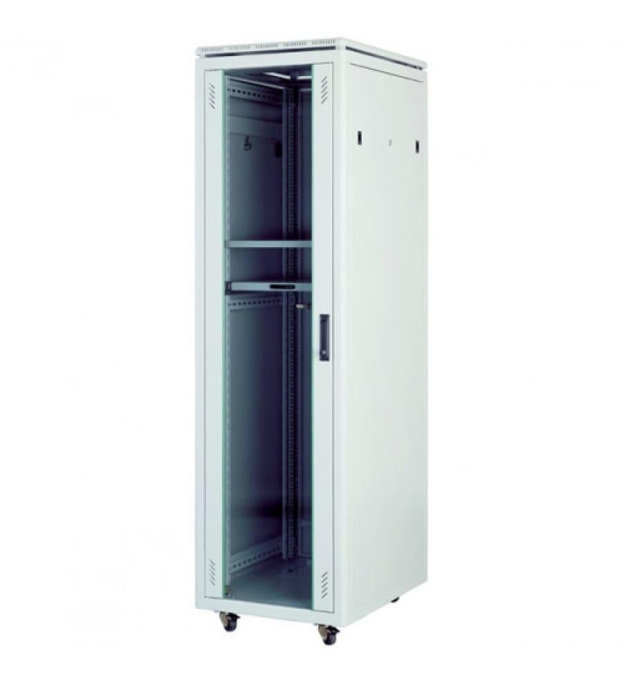- حماية فائقة للمعدات: باب زجاجي مقوّى مع قفل يدوي يمنع العبث ويؤمّن الأجهزة.